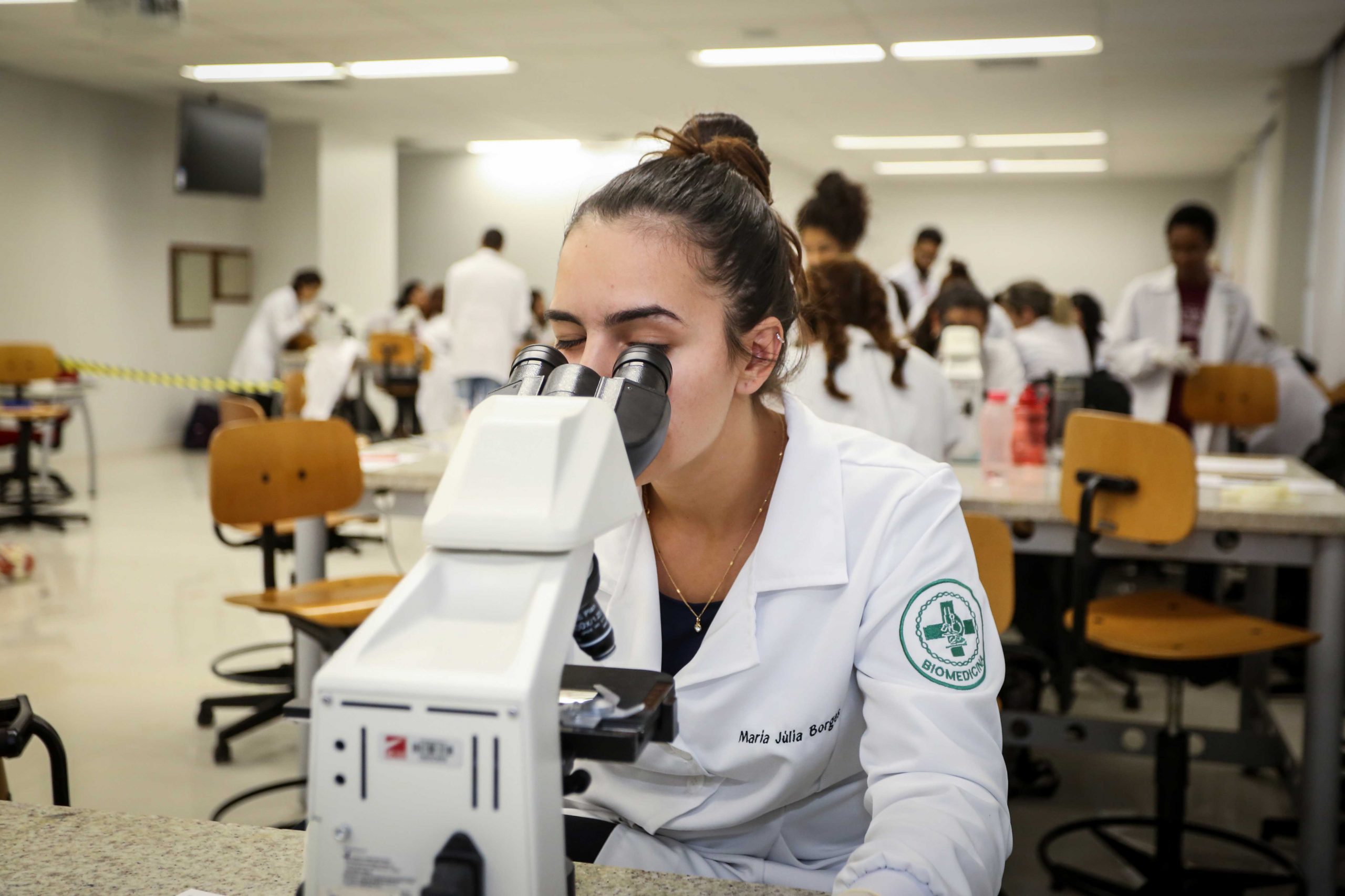 O curso de Biomedicina oferece cerca de 30 áreas de habilitação, proporcionando diversas oportunidades de atuação. O futuro da profissão está diretamente ligado à inovação, tecnologia e especialização.