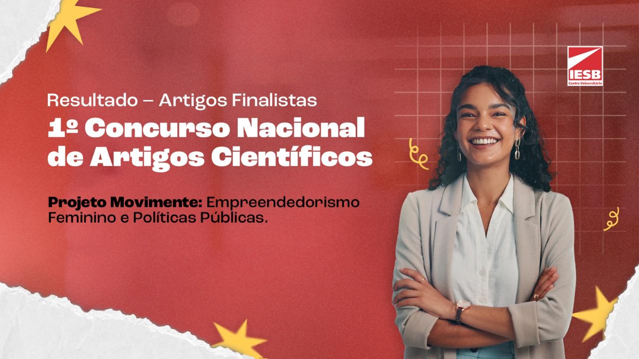 O Centro Universitário IESB e o SEBRAE-DF divulgaram, nesta quinta-feira (26), a lista dos dez finalistas do 1º Concurso Nacional de Artigos Científicos – Projeto Movimente: Empreendedorismo Feminino e Políticas Públicas. Os autores selecionados avançam para a etapa final, que definirá a classificação e a premiação do concurso. Confira aqui.